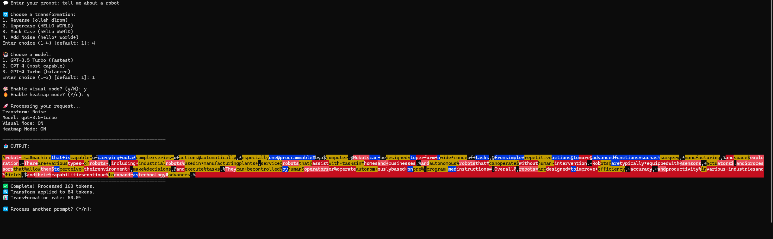 cargo run -- "Prompt here" [transform] [model] [--visual] [--heatmap]